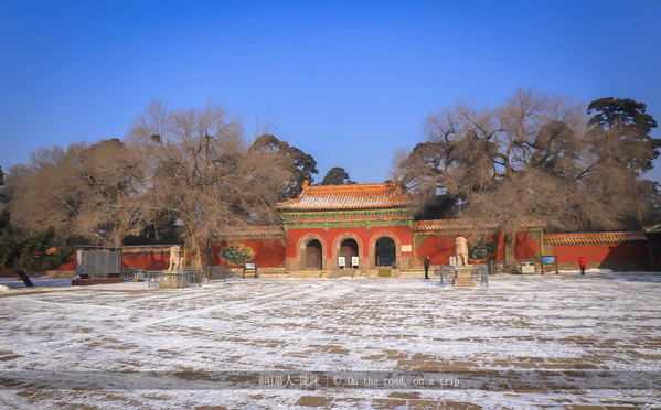 到达清福陵,大门前白茫茫的积雪点缀了一副了唯美的画卷,来自南方的我们瞬间欣喜诺狂的飞奔而出,拿起相机咔咔响。